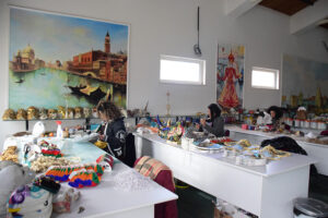Punonjësit, që shumica janë edhe artistë në profesion dekorojnë me dorë maskat në ambientet e fabrikës, duke prodhuar mijëra maska në vit të modeleve të ndryshme.